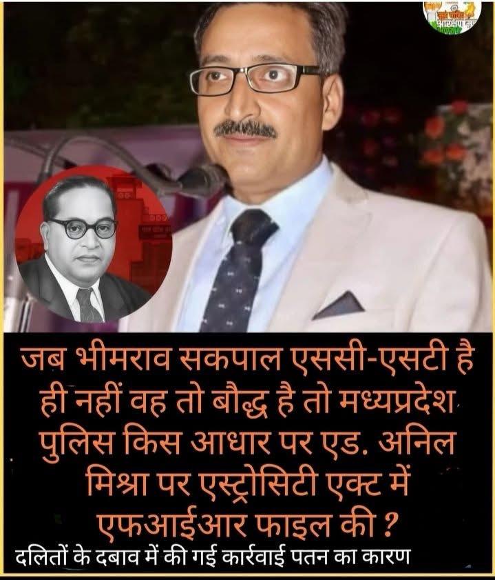 हाईकोर्ट का जब स्पष्ट निर्णय है कि जिसने अपना धर्म परिवर्तन कर लिया है उसे दलित की श्रेणी में नहीं रखा जाएगा तो मध्यप्रदेश पुलिस किस आधार पर एस्ट्रोसिटी एक्ट में Anil Mishra Adv व उनके साथियों पर एफआईआर दर्ज की ? इसका जवाब उन्हें देना पड़ेगा? क्या भीमराव सकपाल का पुलिस को दलित जाति होने का सर्टिफिकेट दिया गया?