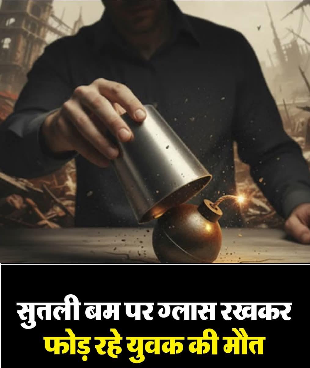 • नोएडा के सेक्टर 63 में एक लड़का सुतली बम पर स्टील की ग्लास रखकर जला रहा था,
