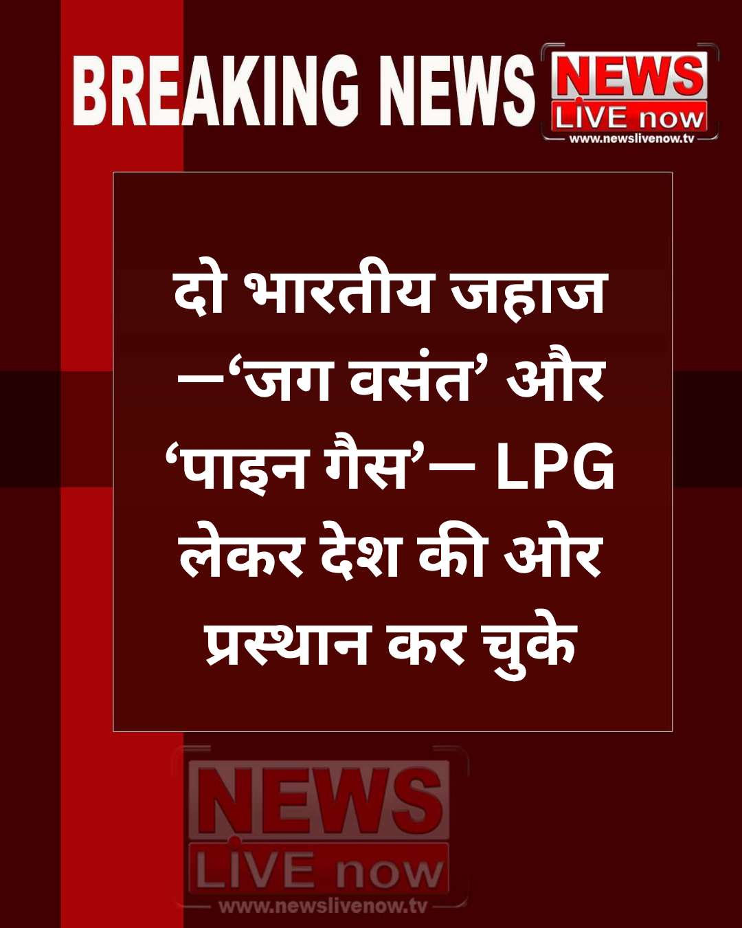 • #NewsLiveNow होर्मुज क्षेत्र में बढ़ते तनाव के बीच भारत के लिए राहत भरी खबर सामने आई है। दो भारतीय जहाज—‘जग वसंत’ और ‘पाइन गैस’—तरल पेट्रोलियम गैस (LPG) लेकर देश की ओर प्रस्थान कर चुके हैं।