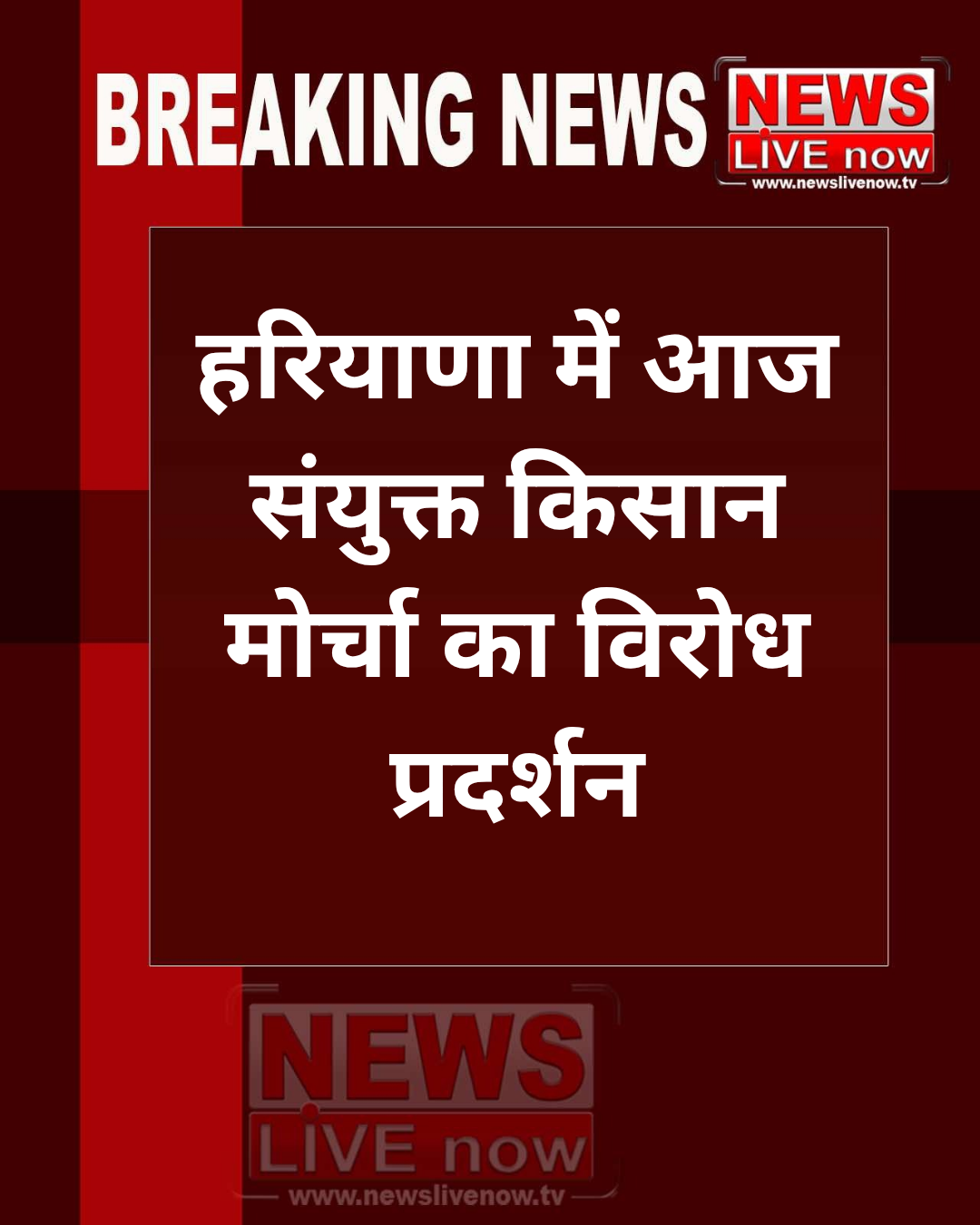 • #NewsLiveNow हरियाणा में आज संयुक्त किसान मोर्चा का विरोध प्रदर्शन, राष्ट्रीय राजमार्गों को बाधित करने की चेतावनी, प्रशासन सतर्क मोड में
