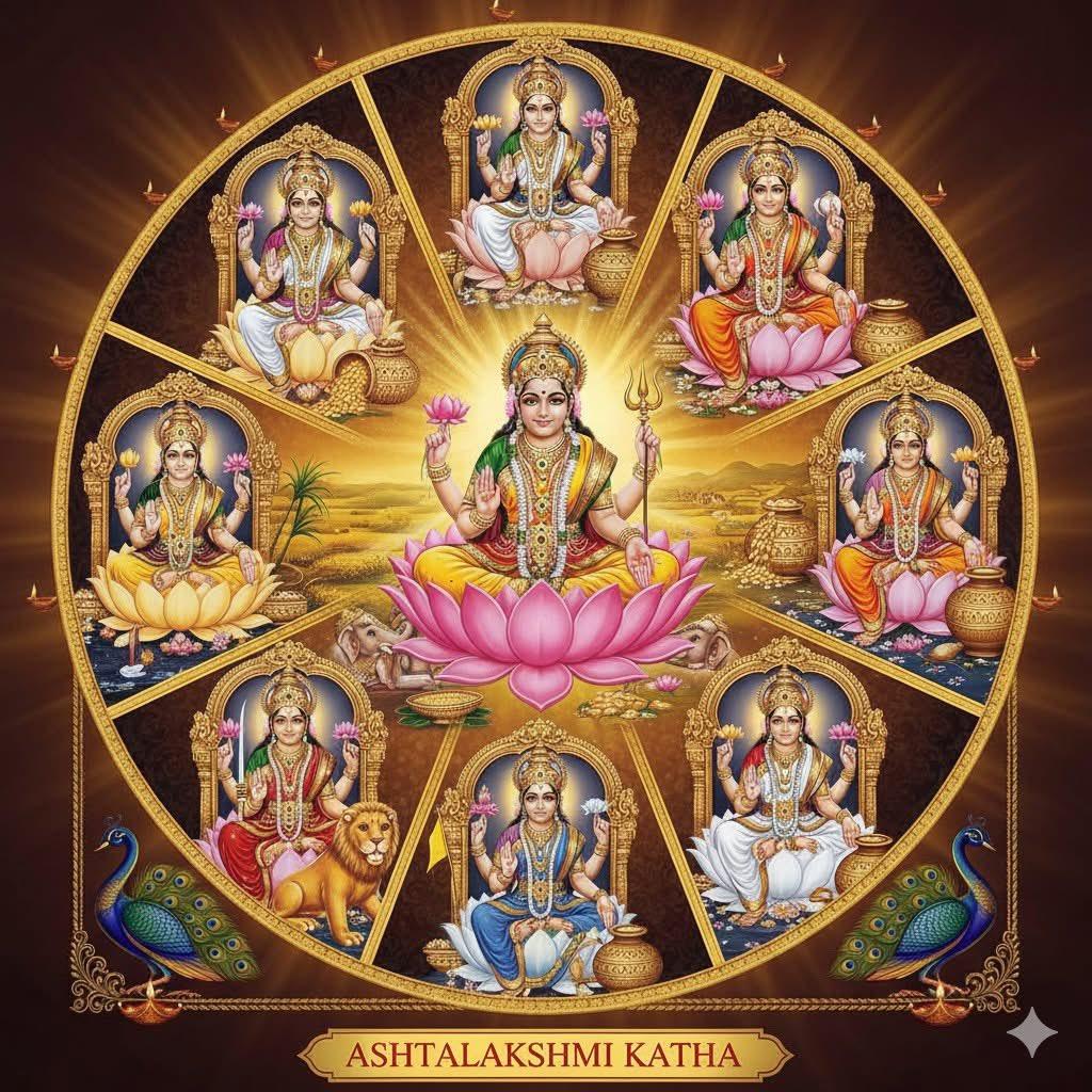 • अष्टलक्ष्मी का अर्थ है देवी लक्ष्मी के आठ विशेष स्वरूप। इन आठ रूपों की पूजा विभिन्न प्रकार की समृद्धि और कल्याण के लिए की जाती है।