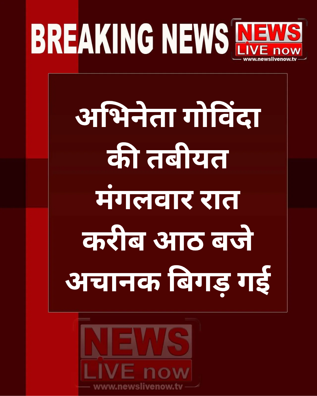 #NewsLiveNow рдлрд┐рд▓реНрдо рдЬрдЧрдд рдХреЗ рдорд╢рд╣реВрд░ рдЕрднрд┐рдиреЗрддрд╛ рдЧреЛрд╡рд┐рдВрджрд╛ рдХреА рддрдмреАрдпрдд рдордВрдЧрд▓рд╡рд╛рд░ рд░рд╛рдд рдХрд░реАрдм рдЖрда рдмрдЬреЗ рдЕрдЪрд╛рдирдХ рдмрд┐рдЧрдбрд╝ рдЧрдИред рдмрддрд╛рдпрд╛ рдЬрд╛ рд░рд╣рд╛ рд╣реИ рдХрд┐ рдЙрдиреНрд╣реЗрдВ рдбрд┐рд╕рдУрд░рд┐рдПрдВрдЯреЗрд╢рди рдХреА рд╕рдорд╕реНрдпрд╛ рд╣реБрдИ, рдЬрд┐рд╕рдХреЗ рдЪрд▓рддреЗ рдЙрдирдХреА рд╣рд╛рд▓рдд рдирд╛рдЬреБрдХ рд╣реЛ рдЧрдИред рдлрд┐рд▓рд╣рд╛рд▓ рдЧреЛрд╡рд┐рдВрджрд╛ рдХреЛ рдореБрдВрдмрдИ рдХреЗ рдЬреБрд╣реВ рд╕реНрдерд┐рдд рдХреНрд░рд┐рдЯрд┐рдХреЗрдпрд░ рд╣реЙрд╕реНрдкрд┐рдЯрд▓ рдореЗрдВ рднрд░реНрддреА рдХрд░рд╛рдпрд╛ рдЧрдпрд╛ рд╣реИред рдЙрдирдХреЗ рдХрд░реАрдмреА рджреЛрд╕реНрдд рдФрд░ рдХрд╛рдиреВрдиреА рд╕рд▓рд╛рд╣рдХрд╛рд░ рд▓рд▓рд┐рдд рдмрд┐рдВрджрд▓ рдиреЗ рдЗрд╕ рдмрд╛рдд рдХреА рдкреБрд╖реНрдЯрд┐ рдХреА рд╣реИред