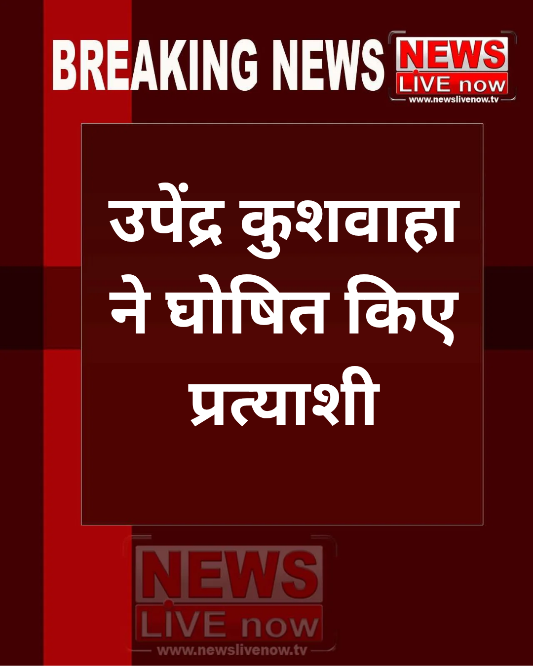 • #NewsLiveNow उपेंद्र कुशवाहा ने घोषित किए प्रत्याशी, सासाराम संसदीय क्षेत्र से पत्नी को दिया टिकट