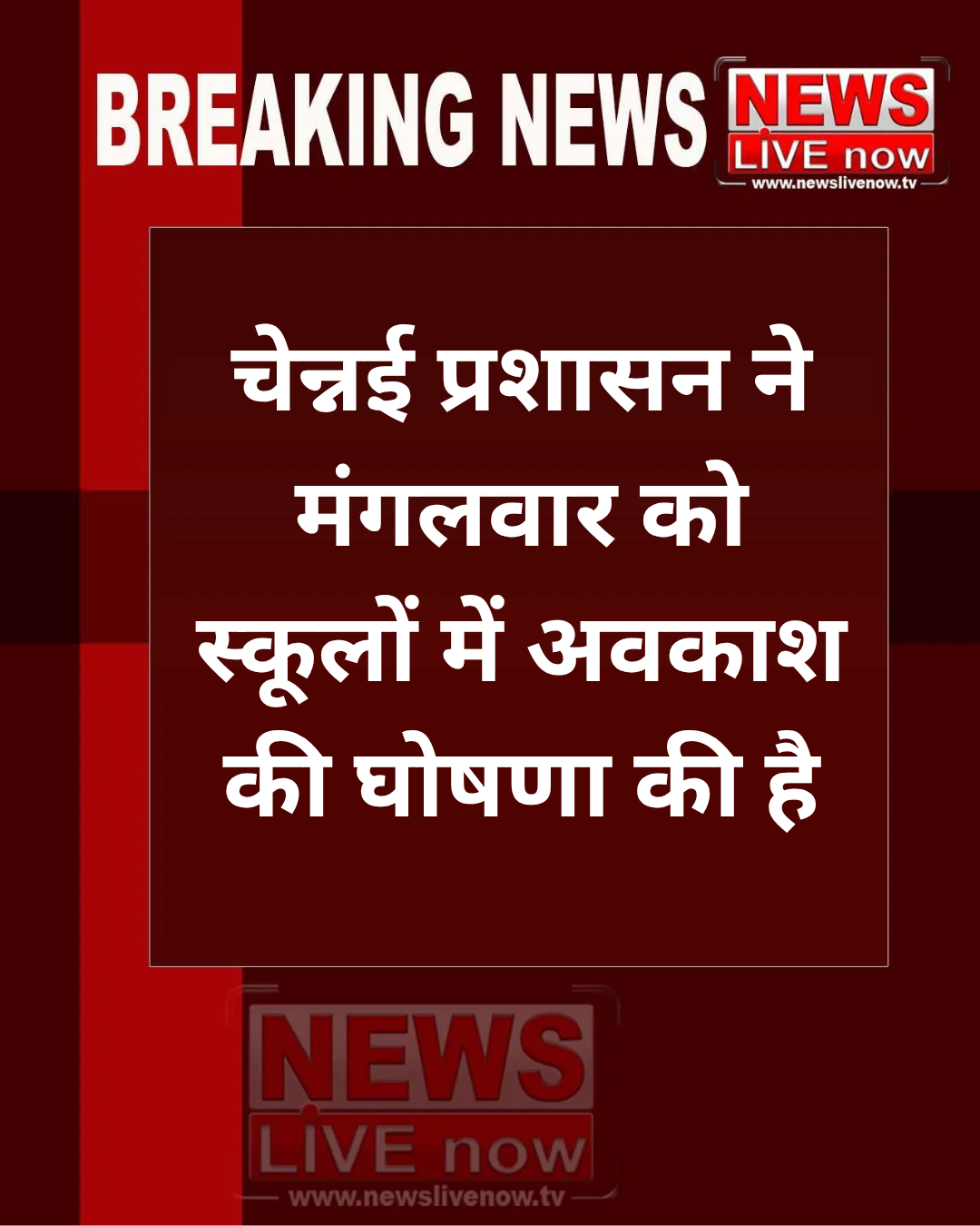 इसी के साथ, चेन्नई प्रशासन ने भी मंगलवार को स्कूलों में अवकाश की घोषणा की है, क्योंकि लगातार वर्षा से शहर का सामान्य जनजीवन प्रभावित हो गया है और यातायात व्यवस्था पर भी असर पड़ा है।