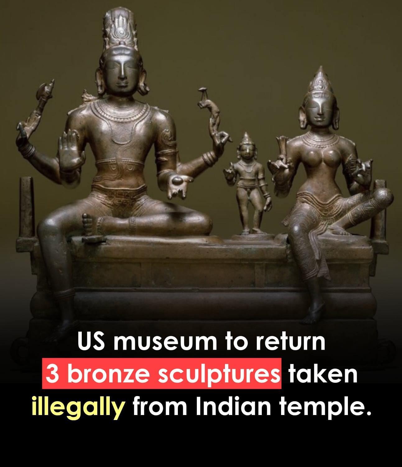 🇮🇳✨ India’s lost heritage is coming home. The Smithsonian’s National Museum of Asian Art has announced the return of three ancient bronze sculptures stolen from temples in Tamil Nadu. They include a 10th-century Shiva Nataraja, a 12th-century Somaskanda, and a 16th-century Saint Sundarar 🙏🕉️