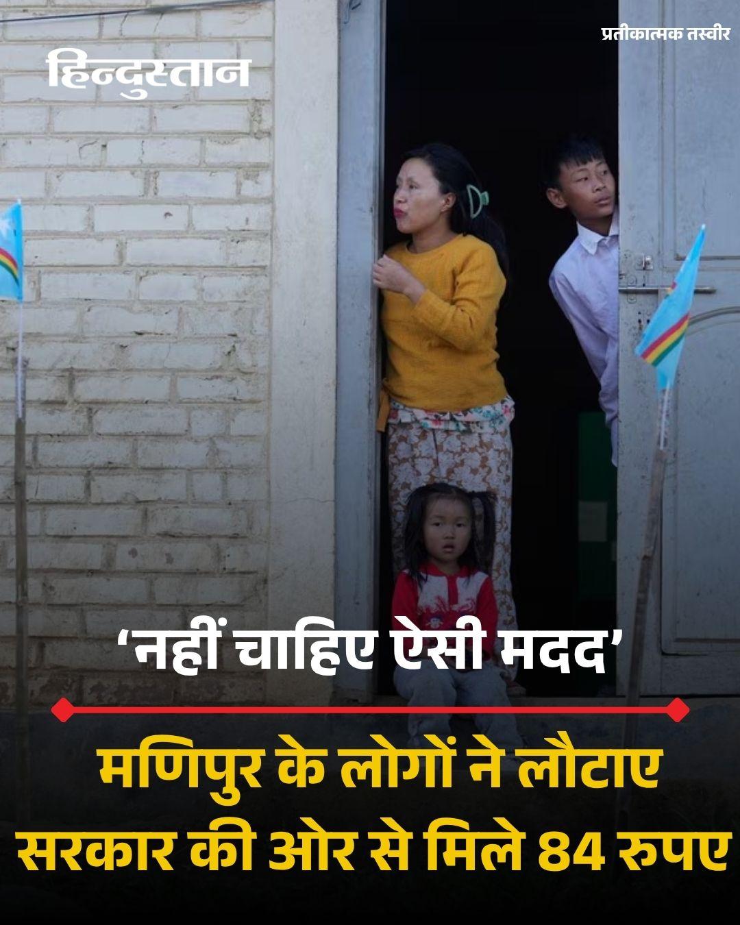 • मणिपुर में सैकड़ों विस्थापित लोगों ने बुधवार को सरकार से नाराजगी जाहिर करते हुए वित्तीय सहायता राशि वापस कर दी है। इस दौरान लोगों ने 84 रुपए प्रति व्यक्ति गुजारा भत्ता दिए जाने का जोरदार विरोध किया है। जानकारी के मुताबिक यहां एक महीने के खाने के खर्च को कवर करने के लिए 30 दिनों के लिए प्रति व्यक्ति प्रति दिन 84 रुपये आवंटित किए जाते हैं।