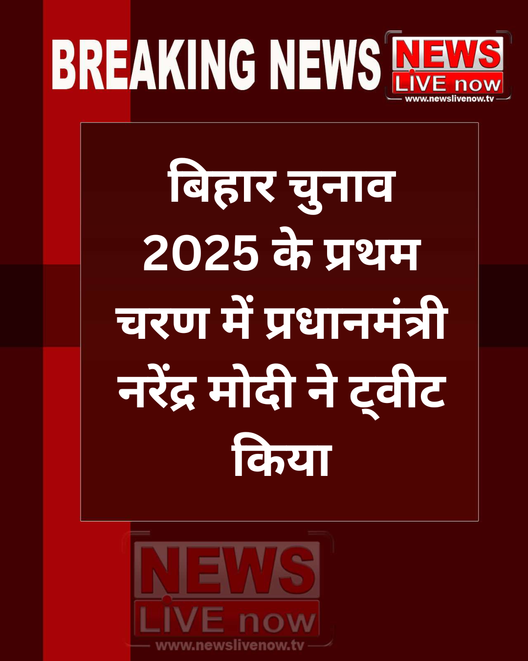 • #NewsLiveNow बिहार चुनाव 2025 के प्रथम चरण में प्रधानमंत्री नरेंद्र मोदी ने ट्वीट किया और लिखा, "बिहार में लोकतंत्र के महापर्व में जन-जन का अद्भुत उत्साह बता रहा है कि विधानसभा चुनावों में एनडीए को अभूतपूर्व बहुमत मिलने जा रहा है"