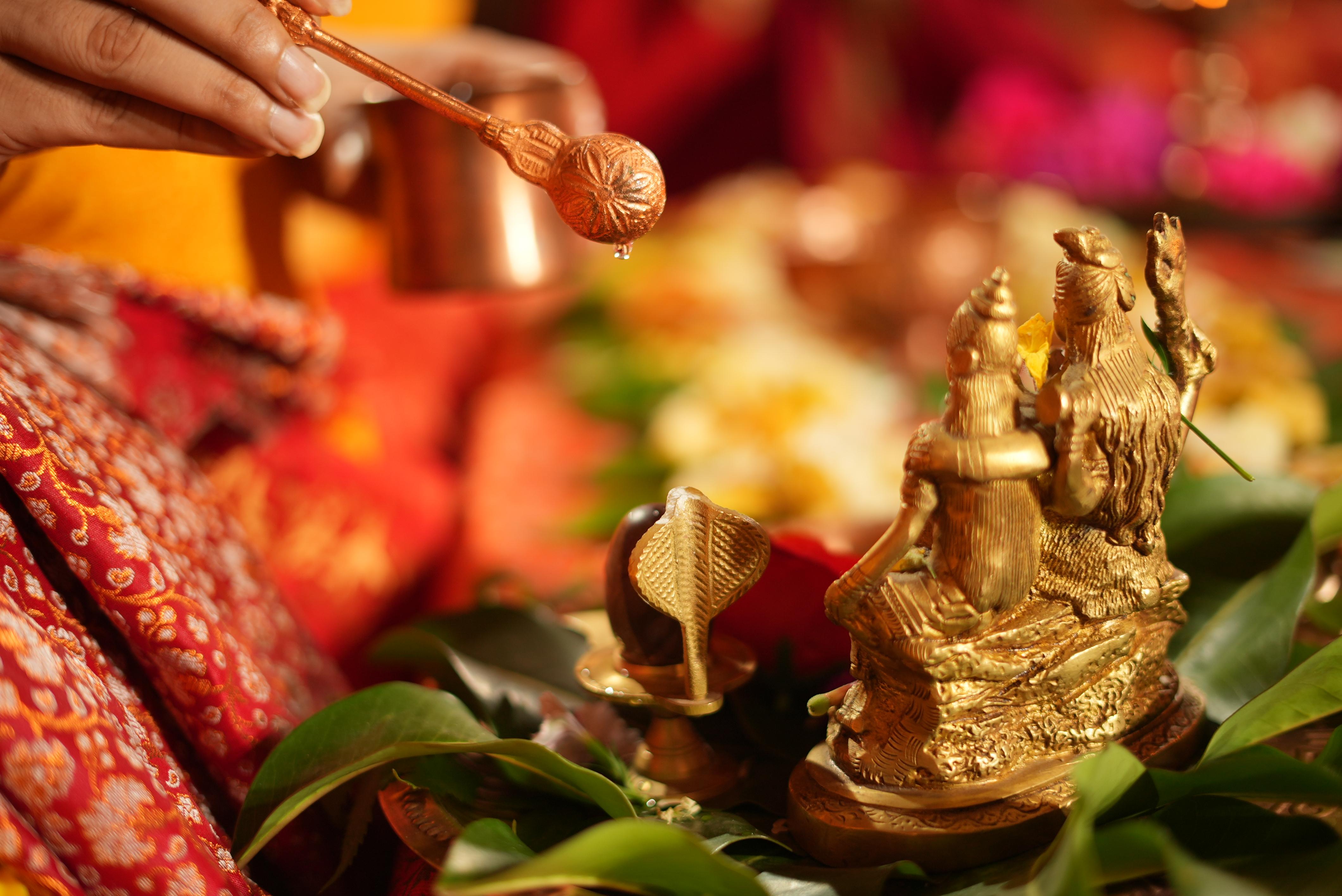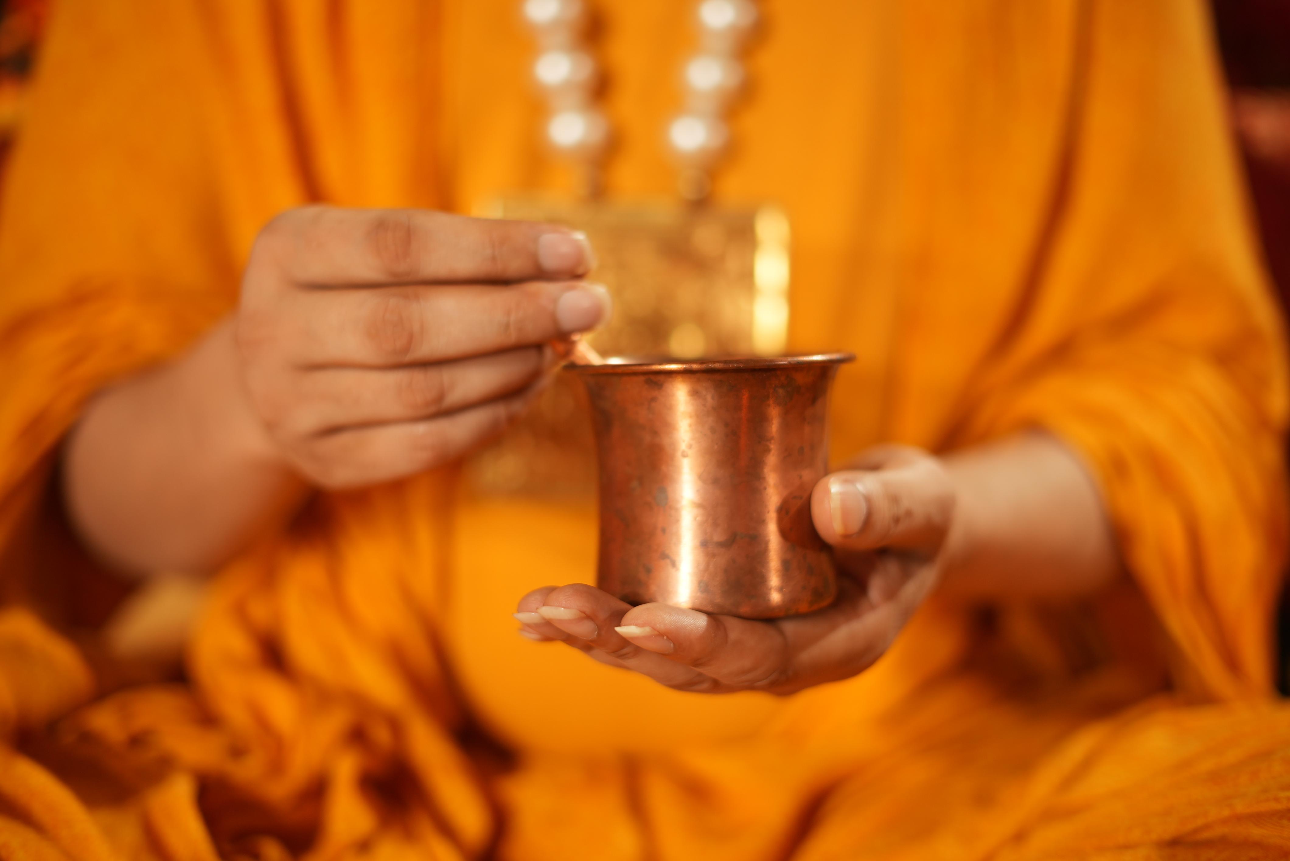 • 10) आचमनी से प्रत्येक मन्त्र के समाप्त होते ही जल निर्माल्य पात्र में छोड़ दें। ऐसा सम्पूर्ण क्रम में करें।