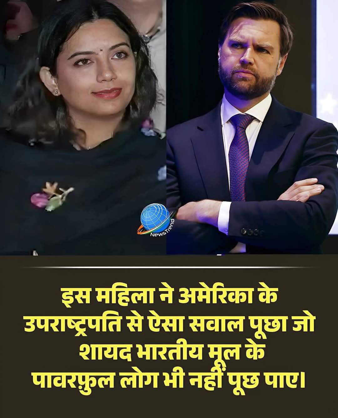 • इस महिला ने दुनिया भर के करोड़ों प्रवासियों की ओर से, अमेरिका के उपराष्ट्रपति जे.डी.वांस से इमिग्रेशन और धर्म को लेकर स्पष्ट और सीधा सवाल पूछा — जो सवाल शायद भारतीय मूल के बड़े-बड़े CEO और पावरफ़ुल लोग भी आमने-सामने नहीं पूछ पाए।