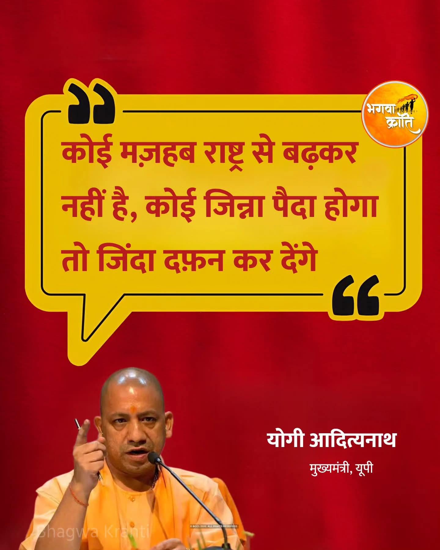 • कोई मज़हब राष्ट्र से बढ़कर नहीं है, कोई जिन्ना पैदा होगा तो जिंदा दफ़न कर देंगे - योगी आदित्यनाथ