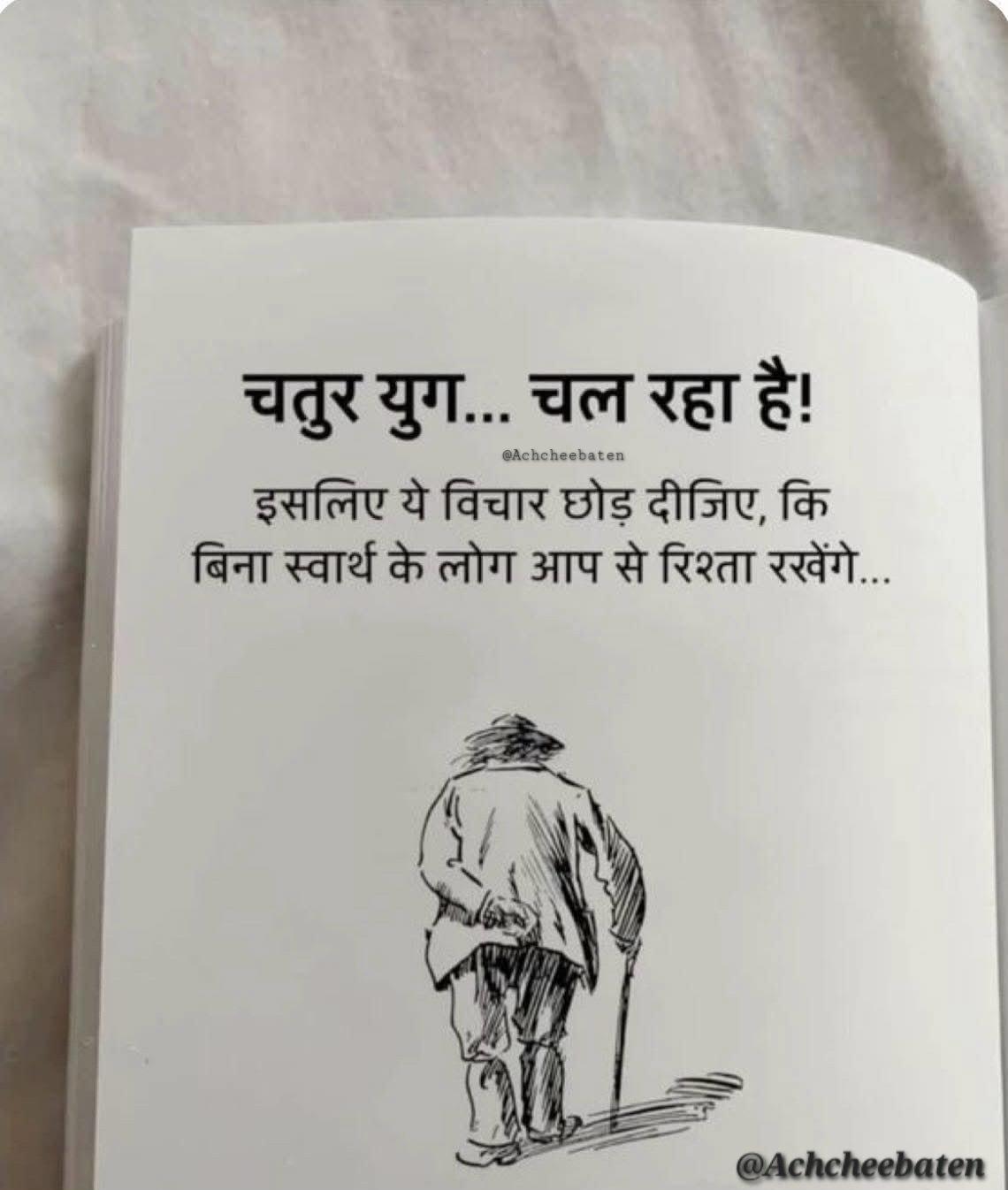 चतुर युग... चल रहा है.. इसलिए ये विचार छोड़ दीजिए, कि बिना स्वार्थ के लोग आप से रिश्ता रखेंगे...! #achcheebaten #scrolllink #quots
