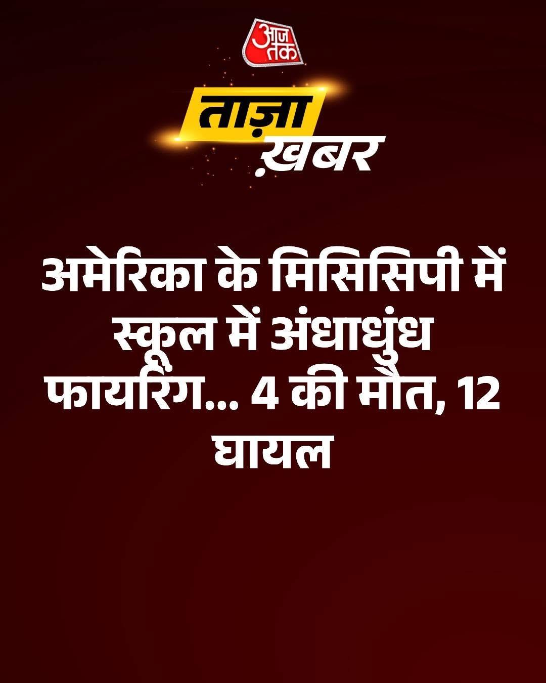 • #BreakingNews: अमेरिका के मिसिसिपी में स्कूल में अंधाधुंध फायरिंग... 4 की मौत, 12 घायल