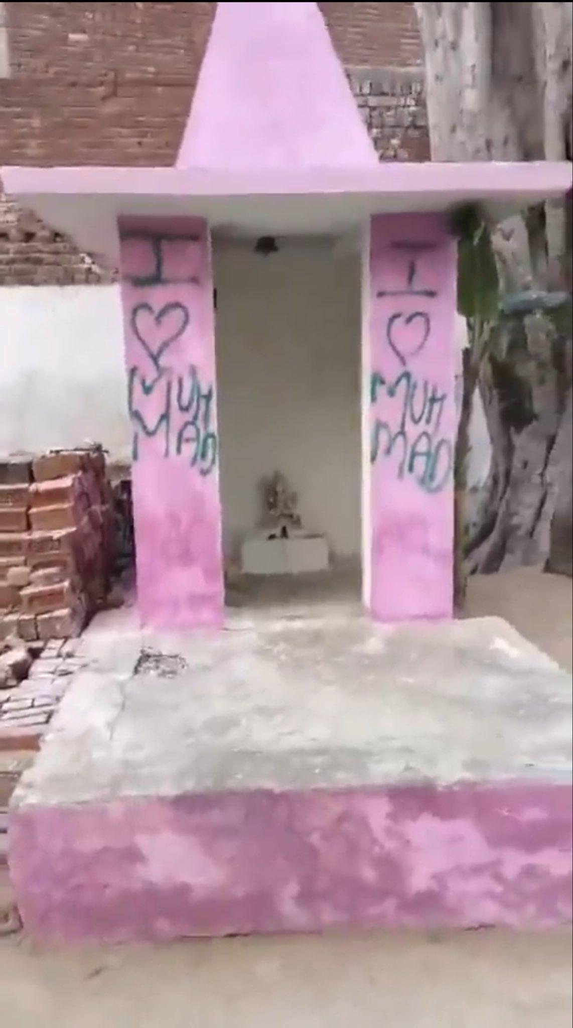 अलीगढ़ में मंदिर की दीवारों पर लिख दिया आई लव मोहम्मद। अब इसका विरोध होगा तो बवाल काटेंगे।