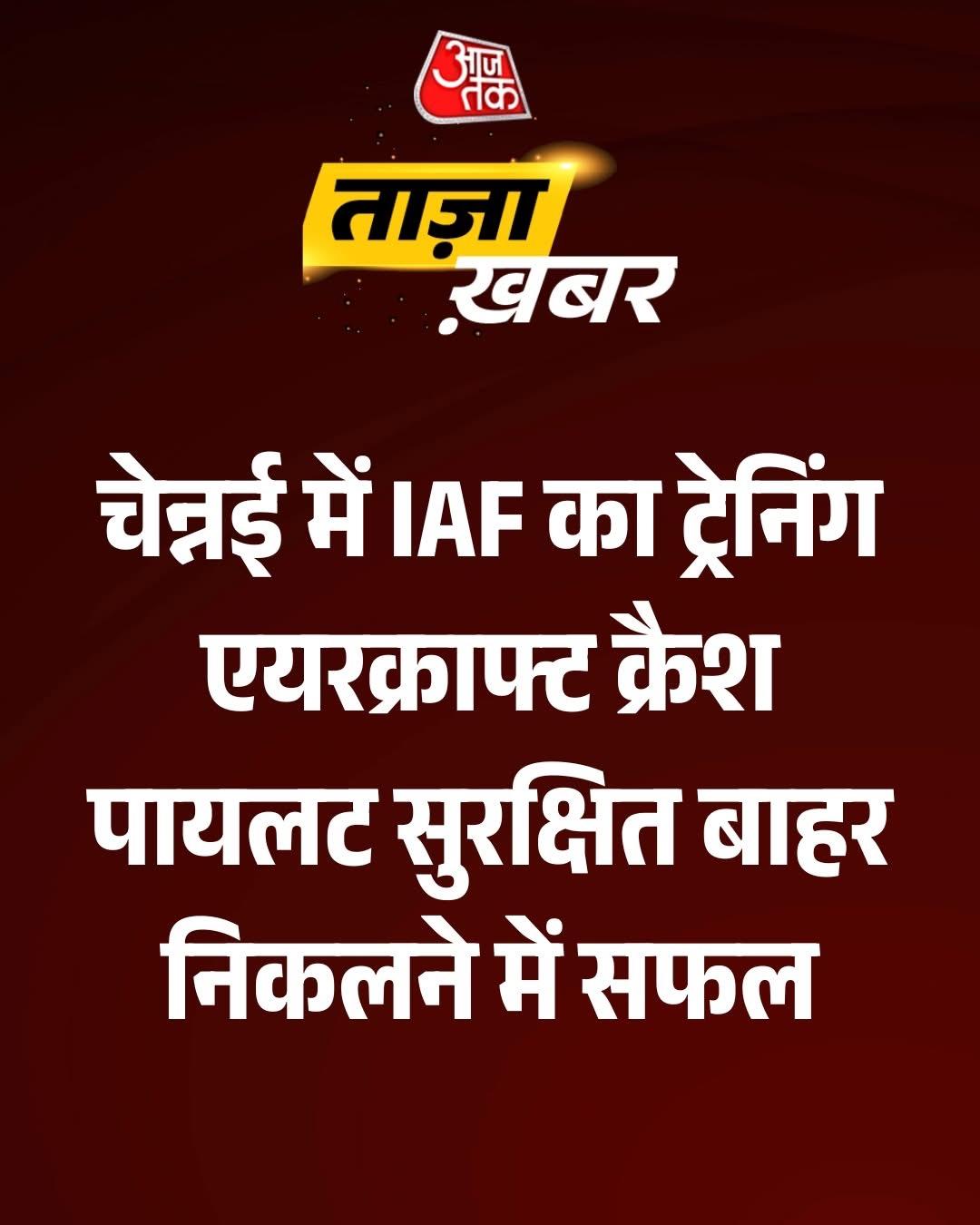 рдЪреЗрдиреНрдирдИ рдХреЗ рддрд╛рдВрдмрд░рдо рдЗрд▓рд╛рдХреЗ рдХреЗ рдкрд╛рд╕ рдЖрдЬ рднрд╛рд░рддреАрдп рд╡рд╛рдпреБ рд╕реЗрдирд╛ рдХрд╛ рдПрдХ ‘Pilatus PC-7’ рдЯреНрд░реЗрдирд┐рдВрдЧ рдПрдпрд░рдХреНрд░рд╛рдлрд╝реНрдЯ рджреБрд░реНрдШрдЯрдирд╛рдЧреНрд░рд╕реНрдд рд╣реЛ рдЧрдпрд╛ред рдпрд╣ рд╡рд┐рдорд╛рди рдирд┐рдпрдорд┐рдд рдкреНрд░рд╢рд┐рдХреНрд╖рдг рдЙрдбрд╝рд╛рди рдкрд░ рдерд╛ред рд╣рд╛рджрд╕рд╛ рдЕрдЪрд╛рдирдХ рд╣реБрдЖ рд▓реЗрдХрд┐рди рд░рд╛рд╣рдд рдХреА рдмрд╛рдд рдпрд╣ рд░рд╣реА рдХрд┐ рдкрд╛рдпрд▓рдЯ рд╕рдордп рд░рд╣рддреЗ рд╕реБрд░рдХреНрд╖рд┐рдд рддрд░реАрдХреЗ рд╕реЗ рдмрд╛рд╣рд░ рдирд┐рдХрд▓рдиреЗ рдореЗрдВ рдХрд╛рдордпрд╛рдм рд░рд╣реЗред рд╡рд╛рдпреБ рд╕реЗрдирд╛ рдиреЗ рдЗрд╕ рдШрдЯрдирд╛ рдХреА рдЬрд╛рдВрдЪ рдХреЗ рд▓рд┐рдП ‘Court of Inquiry’ (COI) рдХрд╛ рдЖрджреЗрд╢ рджрд┐рдпрд╛ рд╣реИ, рддрд╛рдХрд┐ рд╣рд╛рджрд╕реЗ рдХреЗ рд╕рд╣реА рдХрд╛рд░рдгреЛрдВ рдХрд╛ рдкрддрд╛ рд▓рдЧрд╛рдпрд╛ рдЬрд╛ рд╕рдХреЗред рд╕реНрдерд╛рди рдкрд░ рд╕реНрдерд╛рдиреАрдп рдкреНрд░рд╢рд╛рд╕рди рдФрд░ IAF рдХреА рдЯреАрдореЛрдВ рдиреЗ рддреБрд░рдВрдд рдкрд╣реБрдВрдЪрдХрд░ рд╣рд╛рд▓рд╛рдд рдХрд╛ рдЬрд╛рдпрдЬрд╛ рд▓рд┐рдпрд╛ред