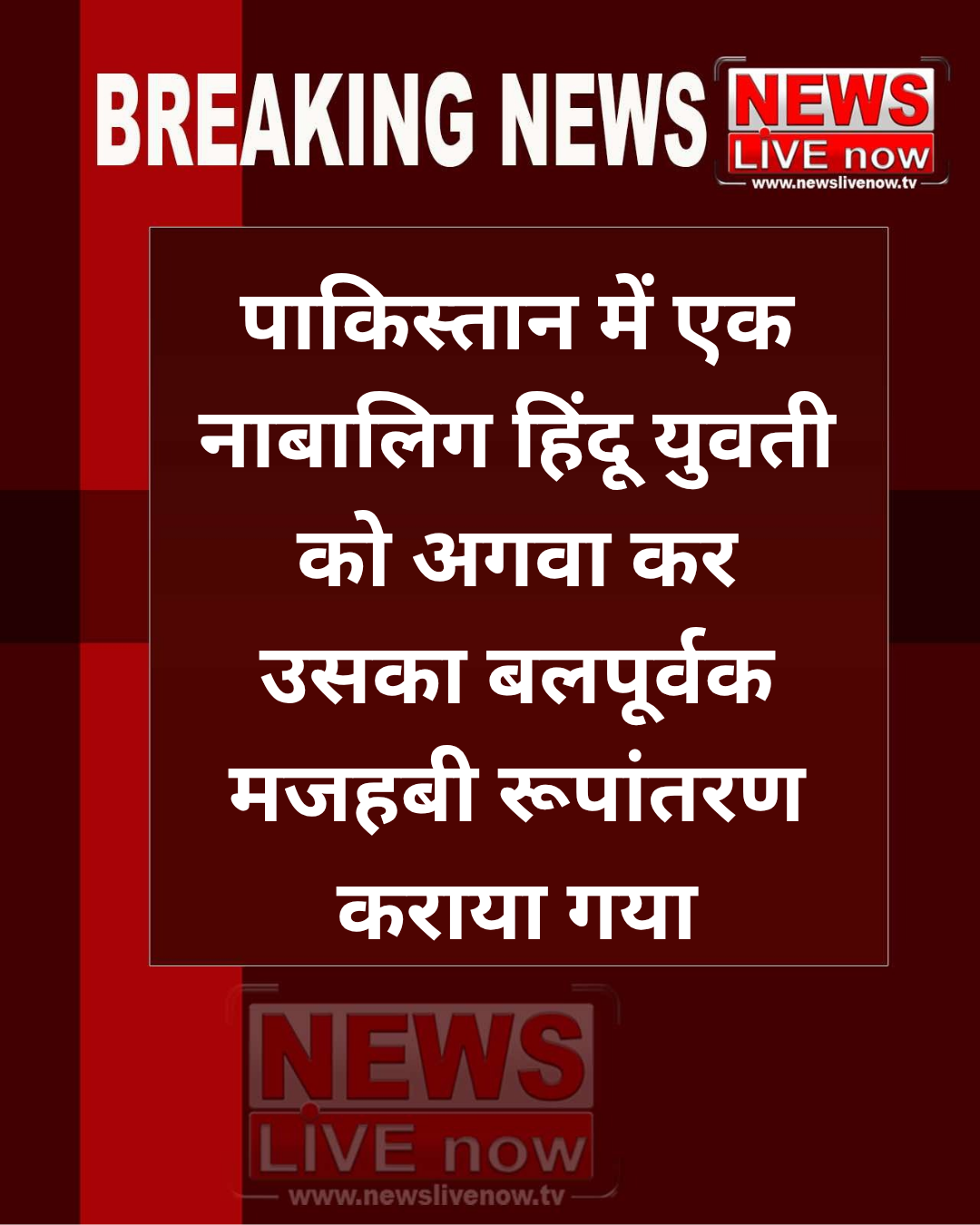 • #NewsLiveNow पाकिस्तान में हिंदू समुदाय के प्रति अत्याचार की घटनाएँ थमने का नाम नहीं ले रही हैं। सिंध प्रांत में एक नाबालिग हिंदू युवती को अगवा कर उसका बलपूर्वक मजहबी रूपांतरण कराया गया। धर्म बदलवाने के बाद उसे एक उम्रदराज मुस्लिम व्यक्ति से जबरन शादी के बंधन में भी बाँध दिया गया। मामले पर हिंदू समाज द्वारा विरोध जताए जाने के बाद, सिंध की एक अदालत ने हस्तक्षेप करते हुए लड़की को उसके परिजनों के सुपुर्द करने का आदेश दिया, जिसके बाद पीड़िता को सुरक्षित रूप से परिवार तक पहुँचाया गया।