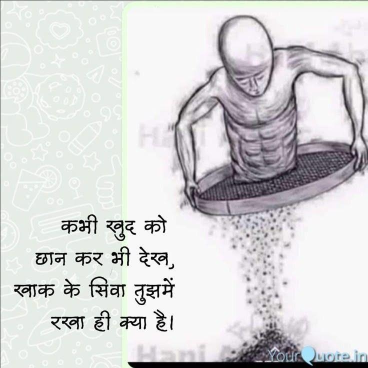 🧐 कभी खुद को छान कर देखो… 🧐 हम दूसरों में कमियाँ ढूँढते हैं, पर खुद को कभी परखते नहीं। ज़रा एक बार खुद को छान कर देखो, शायद एहसास हो जाए कि शरीर मिट्टी का है, अहंकार धूल का, और बचता कुछ नहीं …सिवाय कर्मों के। जब तक इंसान खुद के अंदर झाँकना नहीं सीखता, वो दुनिया की असलियत कभी नहीं समझ पाता। सच्चा आत्ममंथन वही है, जहाँ दिखावा मरता है और इंसान जन्म लेता है। #scrolllink #life #teaching #learning