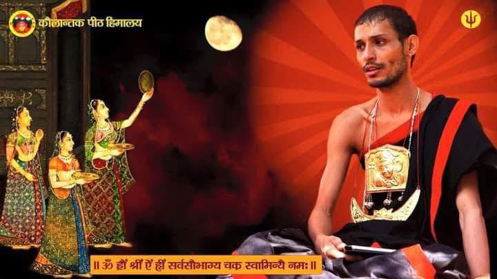 'करवा चौथ' के पावन अवसर पर उन सभी भैरव-भैरवियों हेतु मंत्र प्रस्तुत किया जा रहा है जिन्होंने अपने भैरव या भैरवी हेतु पवित्र व्रत धारण किया है। दिन भर इस मंत्र का मानसिक जाप करना श्रेष्ठ है व इसके प्रभाव से पति-पत्नी की लम्बी आयु के साथ ही धन-धान्य व दाम्पत्य सुख आदि की भी प्राप्ति होती है। ब्रत के दिन शिव-पार्वती का ध्यान व गुरु वंदना सहित अपने कुल देवी-देवताओं की स्तुति व पूजन भी करना चाहिए। यदि भैरव-भैरावियाँ कुंवारे हैं तो भी सुन्दर पति-पत्नी की कामना हेतु ब्रत धारण करने का विधान है। यदि आपका विवाह नहीं हुआ है तो आप अपने प्रेमी या प्रेमिका हेतु भी व्रत धारण कर सकते हैं। 'कौलान्तक संप्रदाय' में जिन भैरवियों या भैरवों की पत्नी अथवा पति इस लोक में नहीं हैं वो भैरव-भैरवी अपने गुरु या इष्ट के निम्मित भी इस व्रत को धारण कर सकते हैं। व्रत चन्द्रमा के दर्शन तक स्थित रहता है। किन्तु बिना मंत्र जाप 'कौलान्तक संप्रदाय' व्रत को महत्त्व नहीं देता। ये व्रत एक गोपनीय 'तांत्रिक साधना' है। इस व्रत की बहुत सी मनघडंत और व्यर्थ की कथाएं पुस्तक बाजारों में उपलब्ध है। जिस पर 'कौलान्तक पीठ' विश्वास नहीं करता। क्योंकि इस व्रत के नियम कथा आदि हमारी परम्परा में बिलकुल भिन्न हैं। अत: आप मंत्र पूर्वक व्रत को संपन्न करें। करवा चौथ के पर्व की हार्दिक शुभ कामनाएं और हाँ जाते-जाते ये बताना जरुरी है की भारत के कुछ मनहूस मीडिया घराने जो की हमेशा इस व्रत विपरीत कुछ न कुछ बताते रहते हैं हम उनको 'मलेच्छ संगठन' करार देते हैं व हिन्दू धर्म विरोधी घोषित कर उनका व उनके कर्मचारियों का मुँह काला करते हैं-कौलान्तक पीठ टीम-हिमालय।